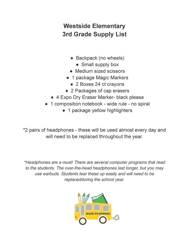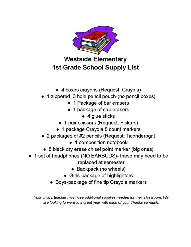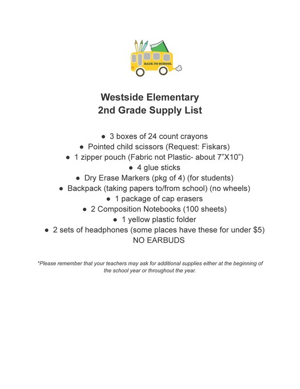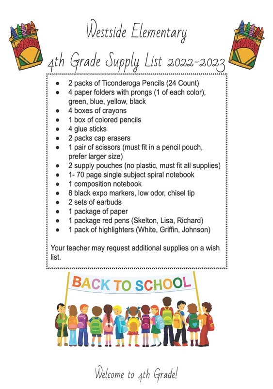 School Supply lists for kindergarten through 4th grades for school year 2022/2023!