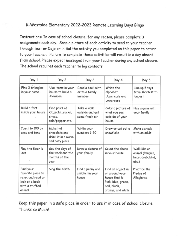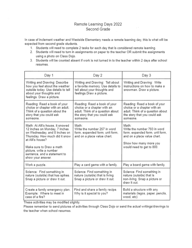 Click here to find your students WAMI packet for school closures. If you have questions regarding the work included in the packet, please contact your students teacher by email.